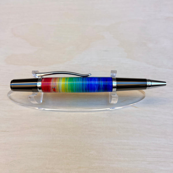 Pen Body: Rainbow Pride color brush strokes in clear acrylic polished to a glass-like finish.